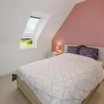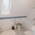 Här erbjuds utsikt över trädgården. Badrummen är utrustade med badkar och dusch.